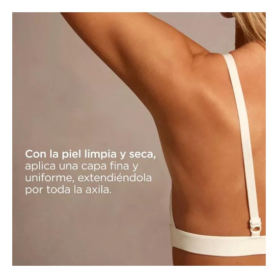 Avec la peau propre et sèche, appliquer le produit en l'étalant sur toute l'aisselle.