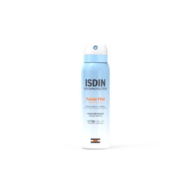 ISDIN Photoprotecteur Facial Mist SPF50 100ml est une protection solaire pour le visage en format brume ultrafine et invisible qui protège efficacement la peau contre les rayons UVB, UVA et la lumière bleue (HE-VL).