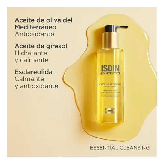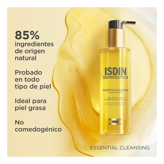 Isdin Essential Cleansing 200ml est une huile nettoyante pour le visage, douce et légère, à la texture huile-lait, qui utilise le pouvoir de l'huile pour nettoyer la peau en profondeur.