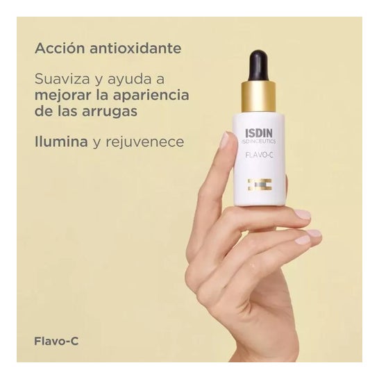 ISDIN Isdinceutics Flavo-C Sérum 30ml est un sérum visage anti-âge conçu pour prévenir le photovieillissement de la peau.