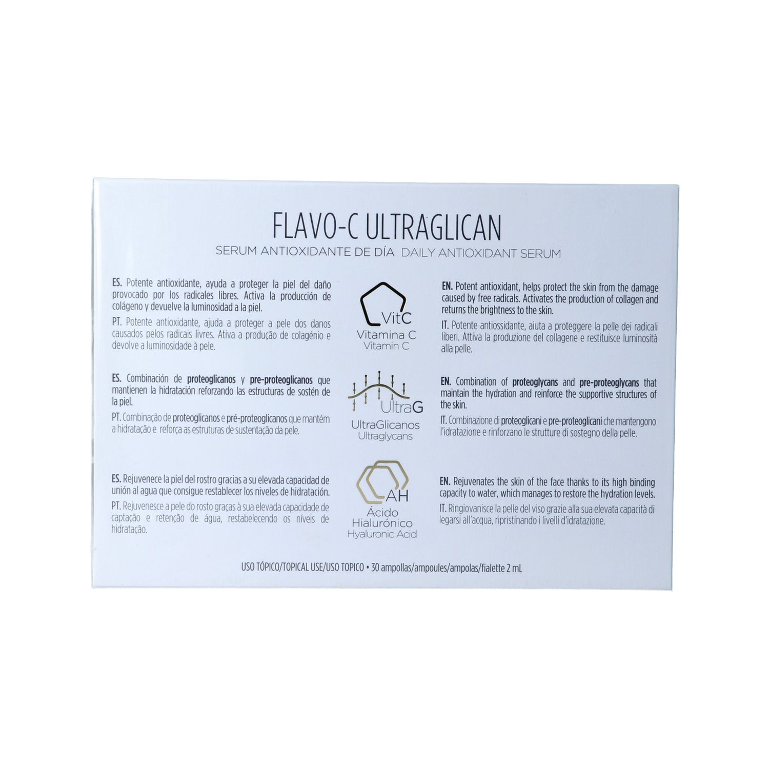 ISDIN Isdinceutics Flavo-C Ultraglican 30 Ampoules est un sérum antioxydant de jour conçu pour agir sur la perte de fermeté et les lignes d'expression.