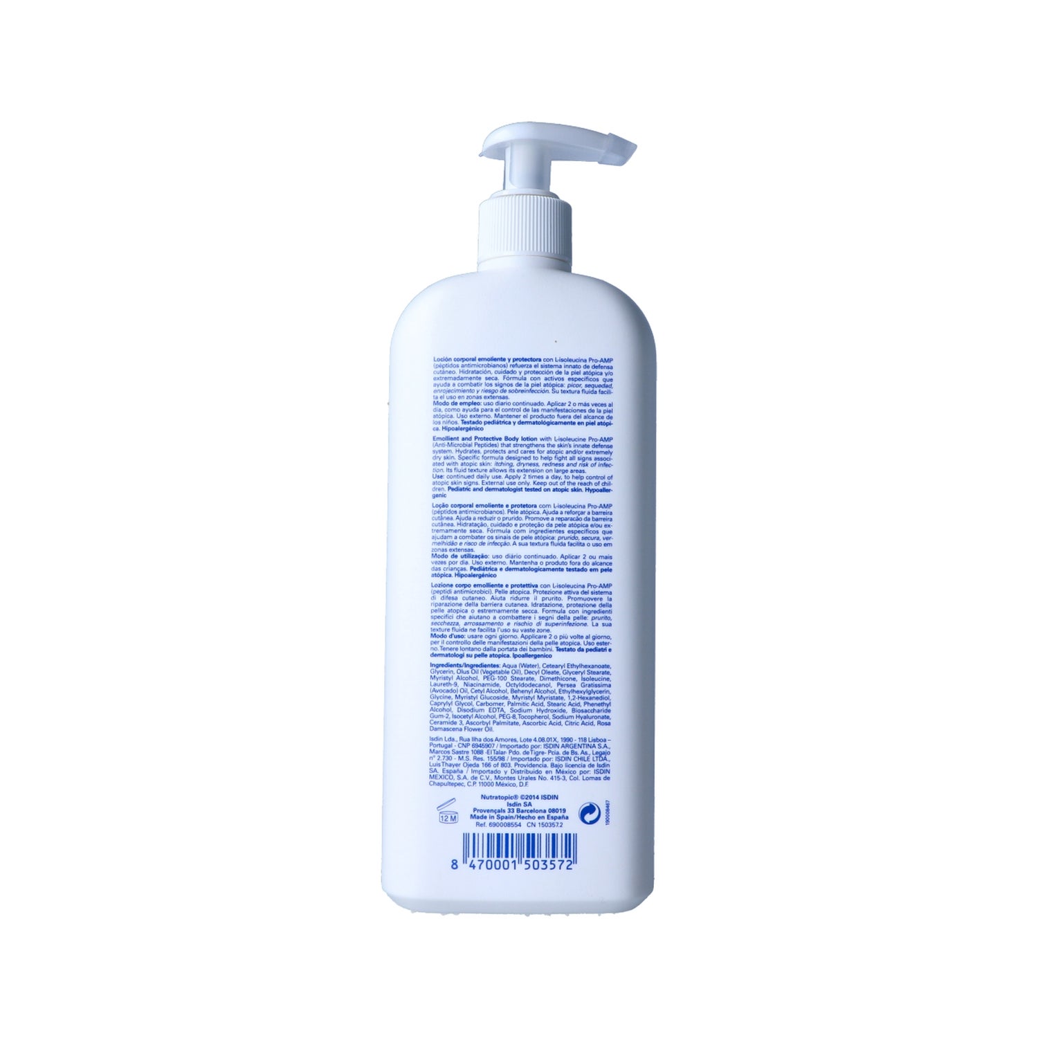 La lotion émolliente ISDIN Nutratopic® Pro-AMP est spécialement formulée pour hydrater la peau atopique en profondeur et calmer les démangeaisons.