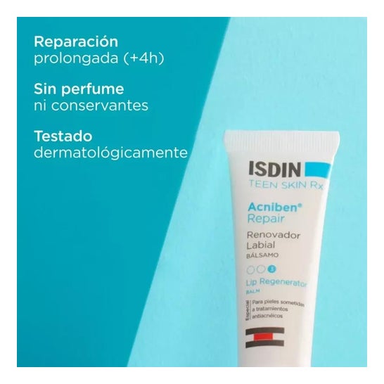 ISDIN Acniben Repair Baume à Lèvres 10ml est un produit conçu pour réparer, renouveler et hydrater les lèvres abîmées par des traitements anti-acné.