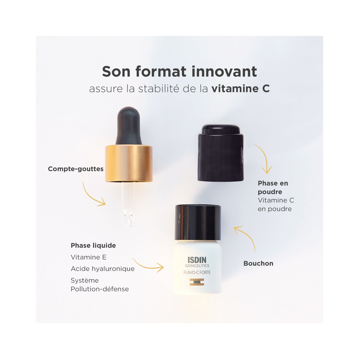 Isdinceutics Flavo-C Forte 5,3ml 3 Unités est un sérum intensif pour le visage qui aide à réduire les signes de fatigue.