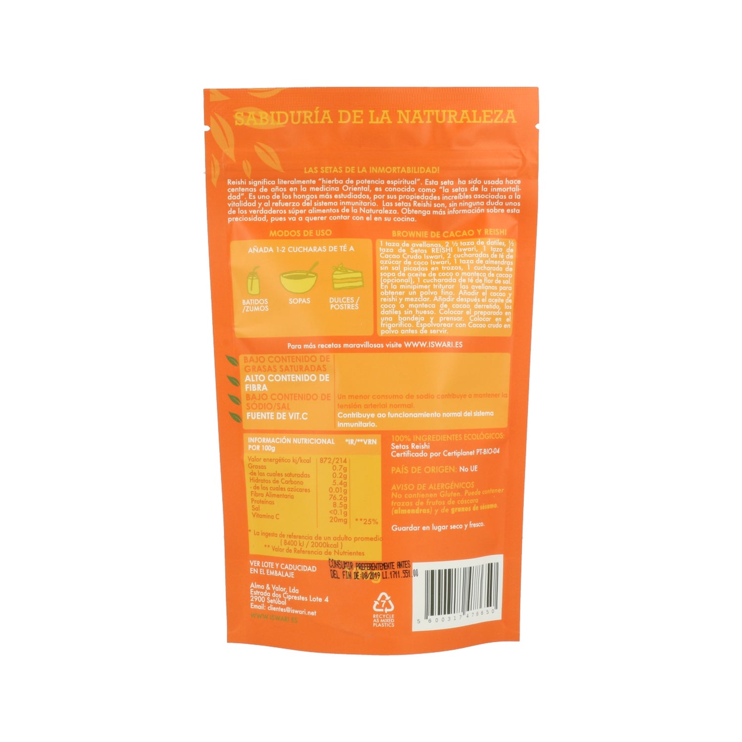 Poudre de Reishi biologique, selon la médecine traditionnelle chinoise, ce champignon aplati au goût amer est l'un des aliments les plus importants pour favoriser la longévité. Le champignon Reishi est une source de vitamine C et peut être facilement incorporé à vos repas. Produit fabriqué avec des ingrédients 100% biologiques à partir de corps de champignons reishi en poudre. Faible teneur en graisses saturées et en sodium/sel. Teneur élevée en fibres et source naturelle de vitamine C. Avertissement aux allergènes : sans gluten. Peut contenir des traces de fruits à coque (amandes et noisettes), d'avoine (sans gluten), de graines de sésame et de cacahuètes.