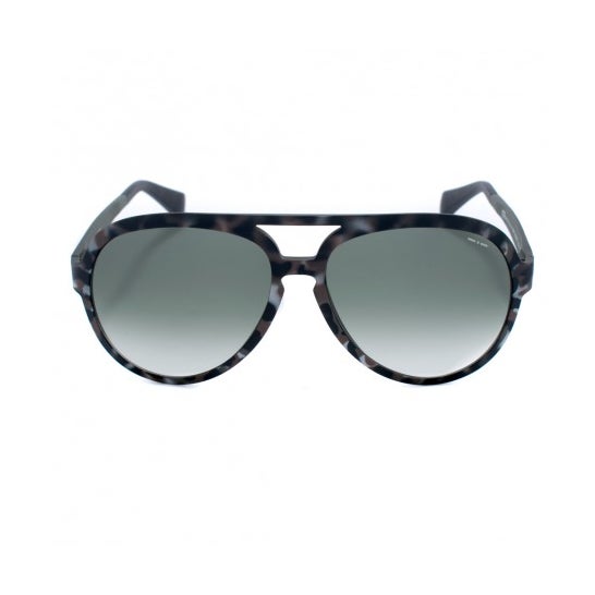 Lunettes de soleil de catégorie 2, qui aident à prévenir la pénétration de polluants ou de poussières dans la structure de l'œil, tout en favorisant une vision claire. Elles contribuent également à réduire l'éblouissement. Monture en acétate bleu avec détails sur le pont et verres polarisants, qui aident à protéger les yeux contre 100 % des rayons UV (UV400), tout en réduisant la sensation de fatigue visuelle. Testées sous contrôle ophtalmologique. Marquage CE. Livrées dans un étui de rangement. Fabriquées en Italie.
