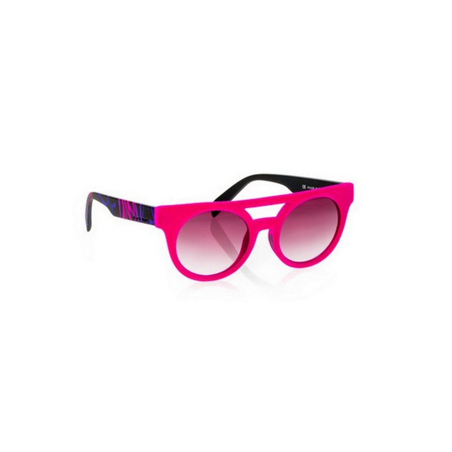 Lunettes de soleil originales avec monture ronde recouverte de velours fuchsia, avec branches décorées d'un imprimé animal et verres noirs dégradés. Ils contribuent à protéger les yeux des rayons UVA, UVB et UVC, à prévenir l'éblouissement et à augmenter le confort visuel. Les lentilles ont un diamètre de 50 mm. Ils comprennent un étui de protection de Italia Independent pour faciliter le transport et éviter les rayures.