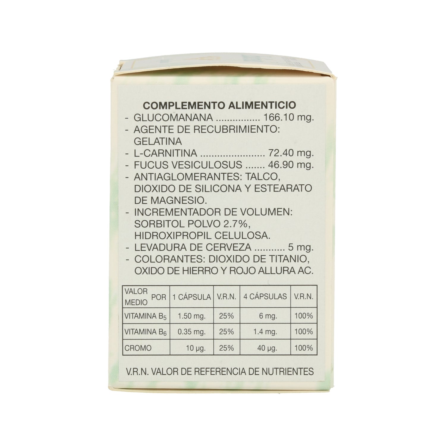 Complément alimentaire conçu et formulé pour brûler les graisses et augmenter la synthèse du glycogène. La composition contient du Konjac (glucomannan), des algues brunes. L-Carnitine, L-Cystéine, DL Phénylalanine, Potassium (citrate), Vitamine B5, Vitamine B6. Avertissement d'allergènes : contient du gluten, du blé et peut contenir des traces de noix, d'œuf, de lait et de soja.