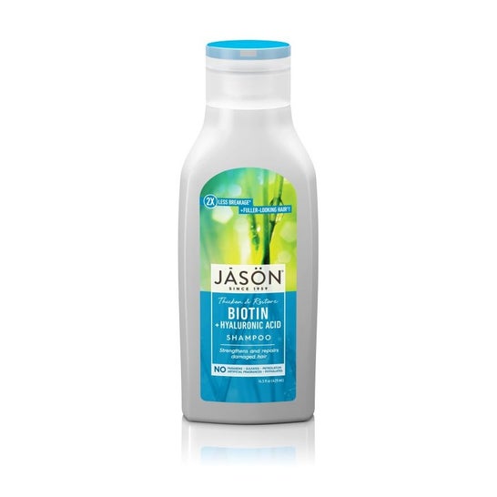 Jason Biotin Repair Shampoo 473ml est un shampooing formulé avec de la biotine. Il est indiqué pour hydrater et réparer les cheveux abîmés et affaiblis et contient également de l'huile de graines de jojoba, qui assure une hydratation en profondeur, et des extraits de ginseng et de lavande qui aident à réparer les pointes abîmées.