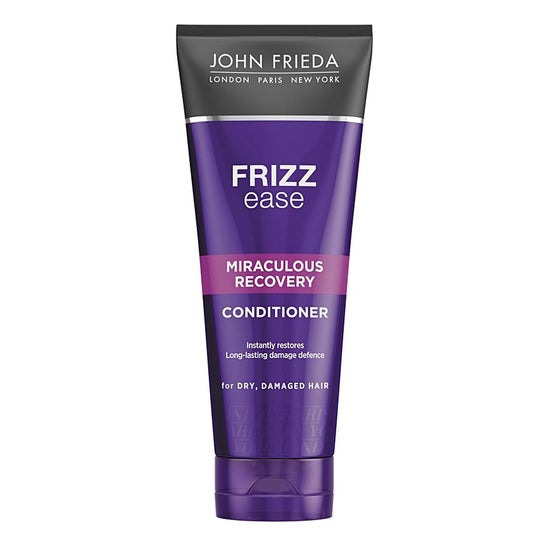 Frizz ease soin démêlant miraculous recovery de John Frieda répare les cheveux secs et abîmés. Il nourrit en profondeur pour renforcer la brillance et le lissage de vos cheveux.
