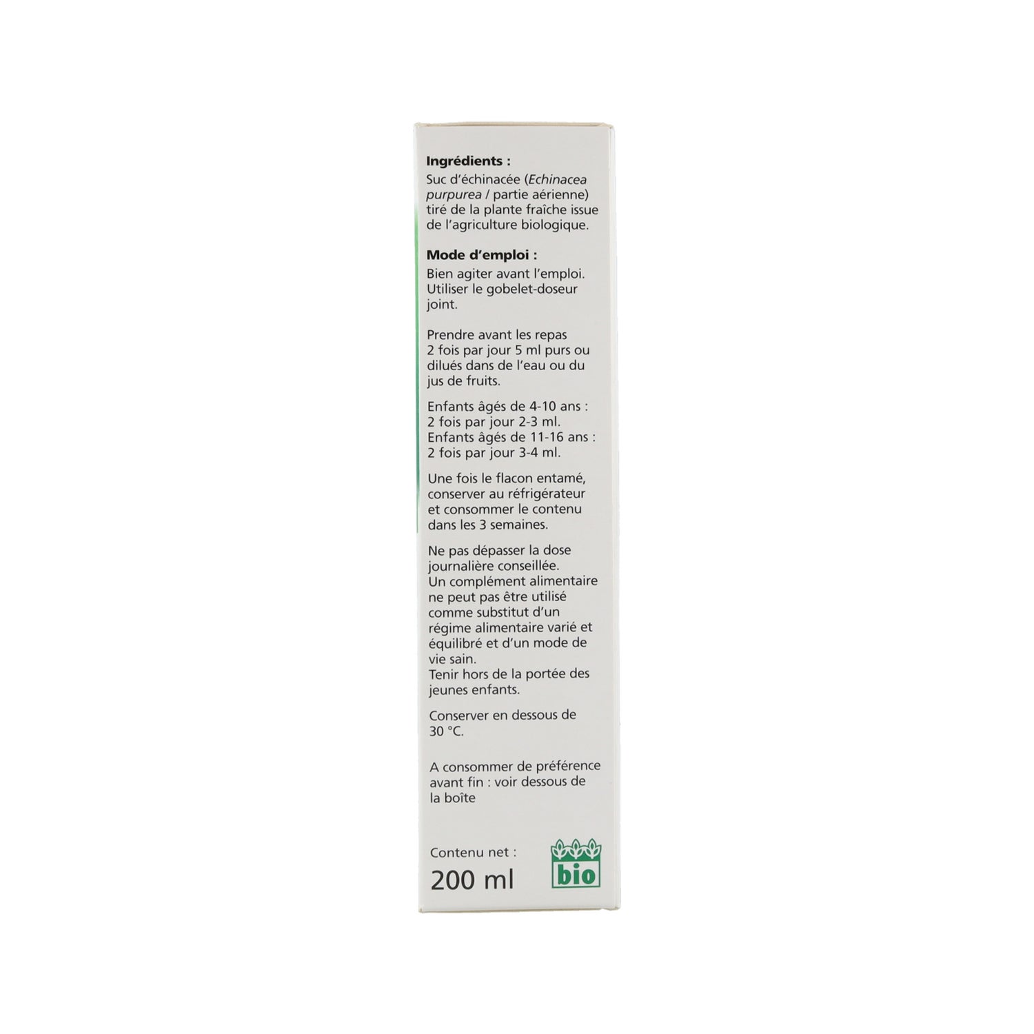 Jus d'échinacée provenant de culture biologique, qui renforce les défenses de l'organisme.