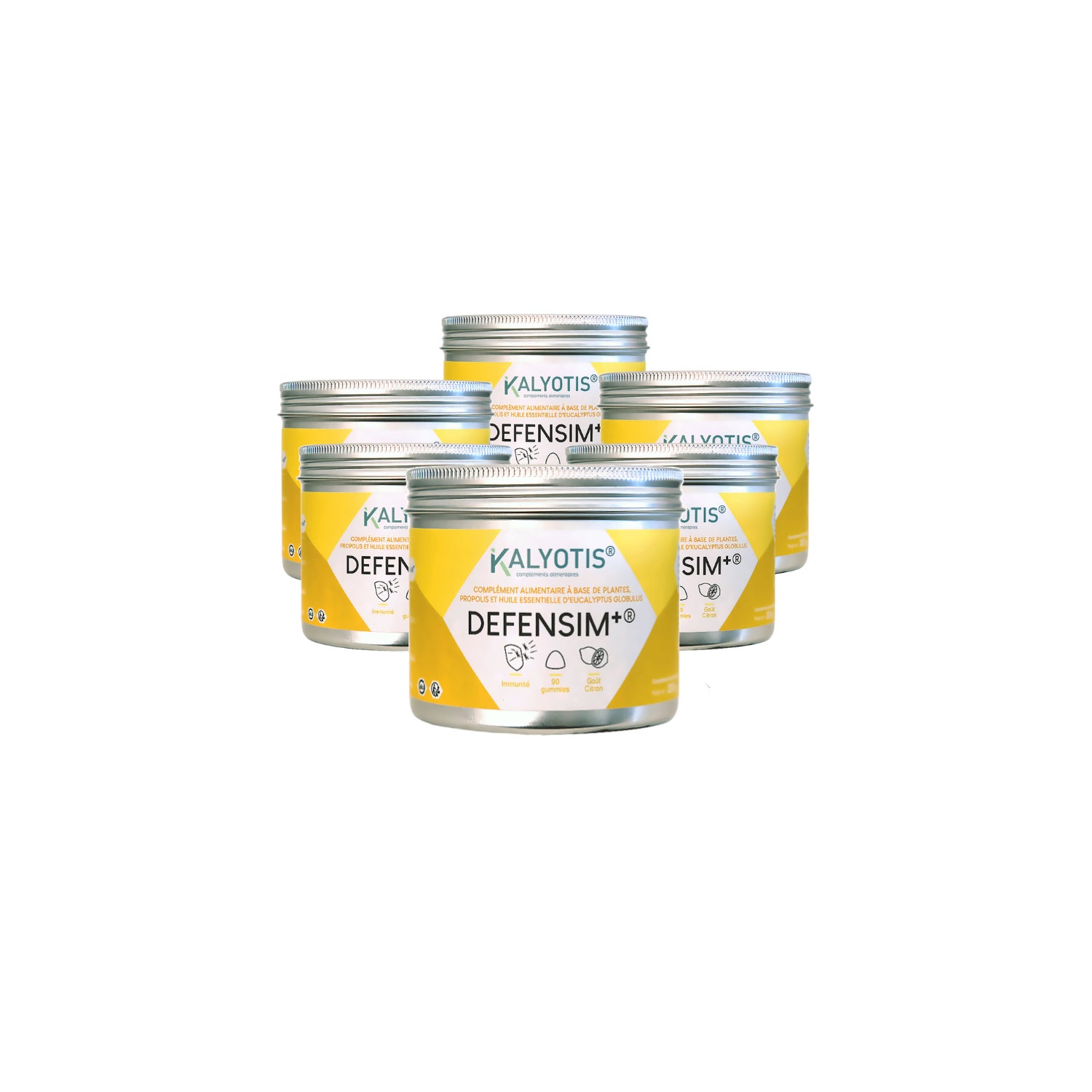 Sirop de glucose, sucre, agent d'enrobage : sucre, arôme naturel, agent gélifiant : pectine, extrait sec de feuille d'olivier (Olea europaea), extrait sec de fruit de cynorrhodon (Rosa canina L.), propolis, agent acidifiant : acide citrique, arôme naturel, agent acidifiant : acide malique, malate de sodium, huile essentielle d'Eucalyptus globulus.