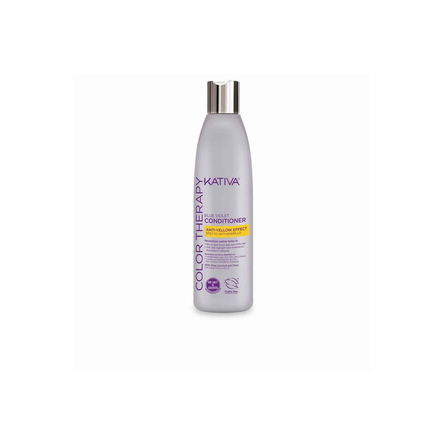 L'après-shampooing bleu Kativa Color Therapy est conçu pour les cheveux blonds, blancs ou méchés. Il contient une formule riche en ingrédients naturels tels que le beurre de karité, l'huile de noix de coco et les agrumes, ainsi qu'une combinaison de pigments bleus et violets, qui aident à atténuer les tons jaunâtres indésirables qui apparaissent dans les cheveux à la suite de l'oxydation causée par les teintures. Ce traitement pénètre dans les cheveux, contribuant à restaurer l'hydratation, la douceur et la brillance avec une couleur sensationnelle.