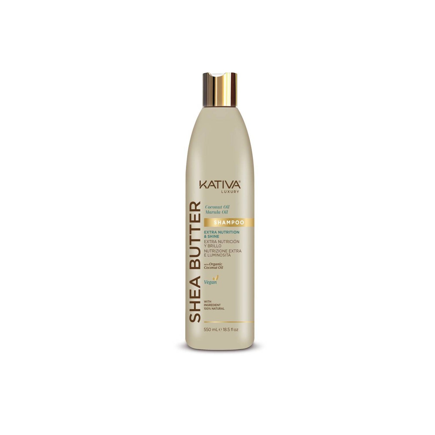 Kativa Shea Butter Coconut & Marula Oil Shampoo 550ml est un shampoing qui apporte une nutrition et brillance supplémentaires aux cheveux.