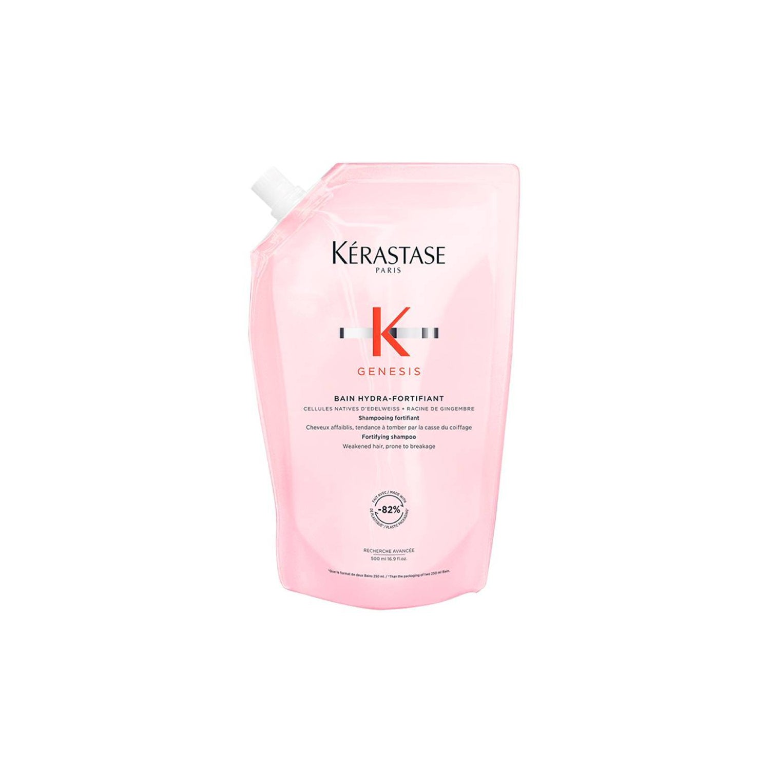 Kérastase Genesis Bain Hydra-Fortifiant Refill 500ml est un shampooing conçu pour renforcer et revitaliser les cheveux affaiblis et sujets à la chute. Ce produit est formulé spécifiquement pour les cheveux fins, gras ou fragiles, et aide à réduire visiblement la chute causée par la casse, offrant une sensation de légèreté et d'hydratation immédiate.