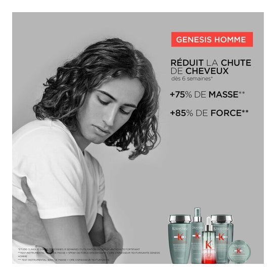 Kérastase Genesis Homme Sérum Fortifiant Anti-Chute 90ml est un sérum capillaire à base de racines de gingembre, de créatine et d'aminexil qui ralentit la chute des cheveux affaiblis.