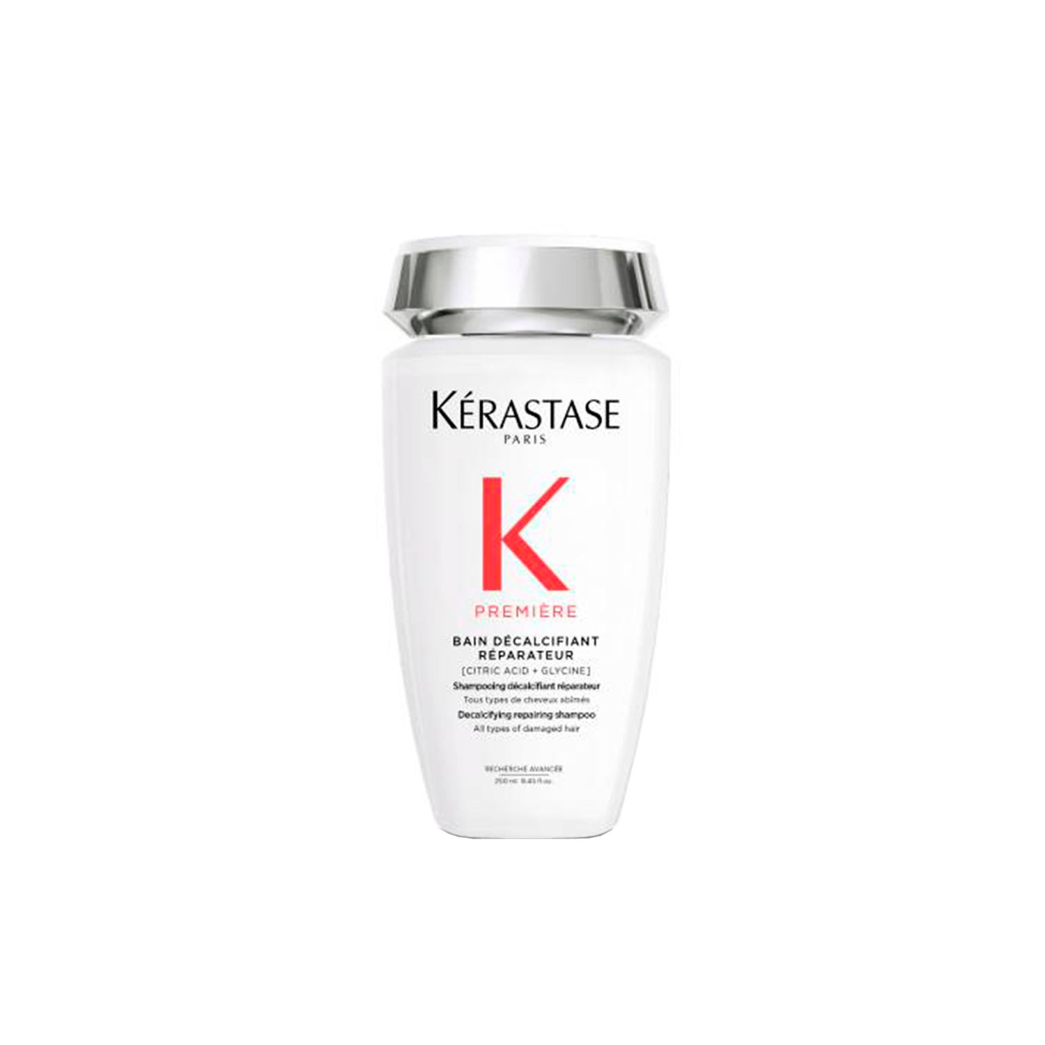 Kérastase Première Bain Décalcifiant 500ml est un shampooing décalcifiant et réparateur, conçu pour tous les types de cheveux ayant subi des traitements intensifs ou étant endommagés. Ce produit professionnel est sans sulfates et offre un nettoyage doux tant pour les cheveux que pour le cuir chevelu.