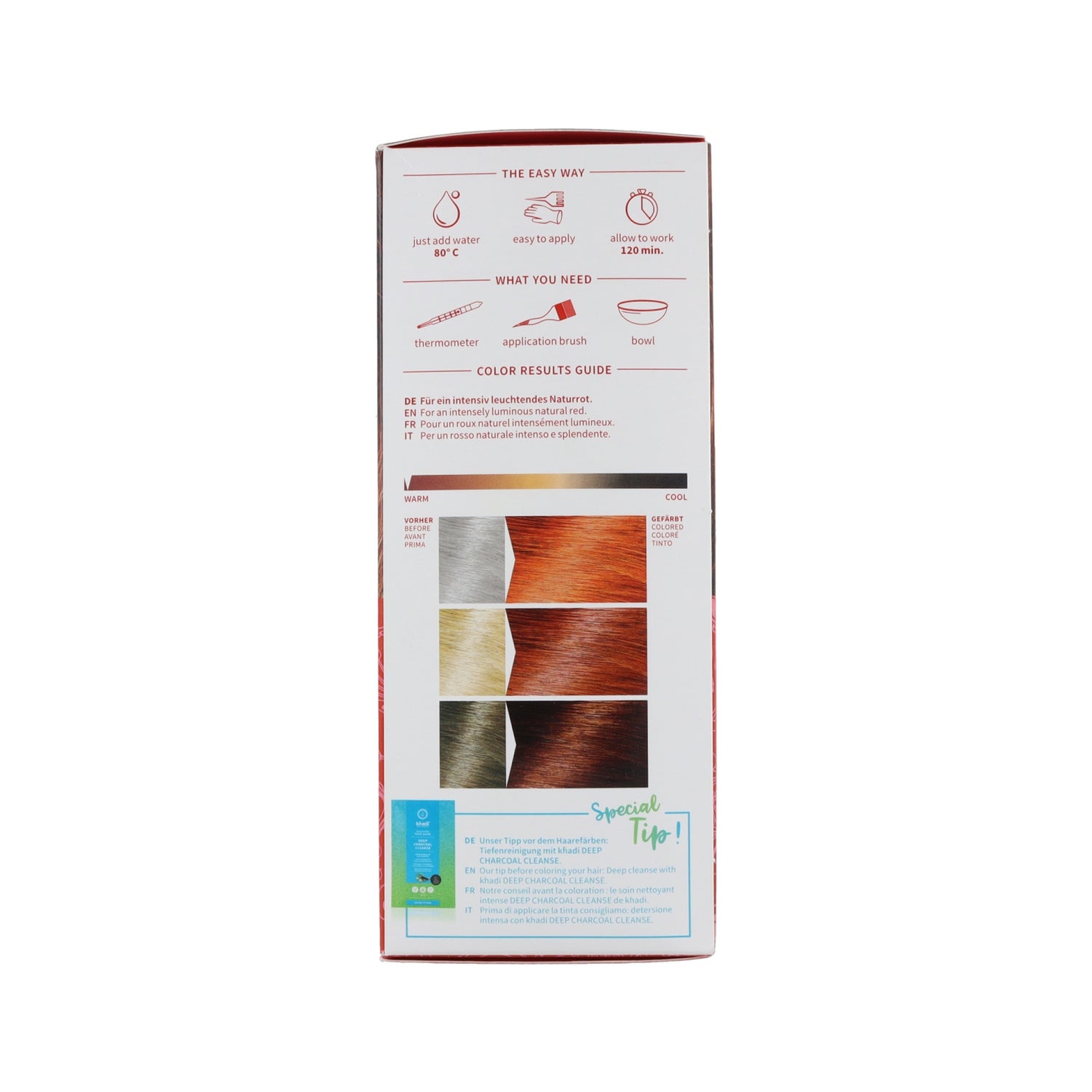 Henné ayurvédique pour la coloration des cheveux dans un ton rouge acajou. Composé de henné, d'amla et de jatropha qui tonifient les cheveux, selon le temps d'application. Formulé à partir de recettes indiennes traditionnelles, avec de la casse 100% naturelle qui apporte brillance et douceur à la fibre capillaire. Aide à conditionner et à nourrir les cheveux grâce à sa teneur en nutriments, vitamines et minéraux. Format poudre, composé d'extraits de plantes médicinales, sans parfums, conservateurs, colorants et additifs artificiels.