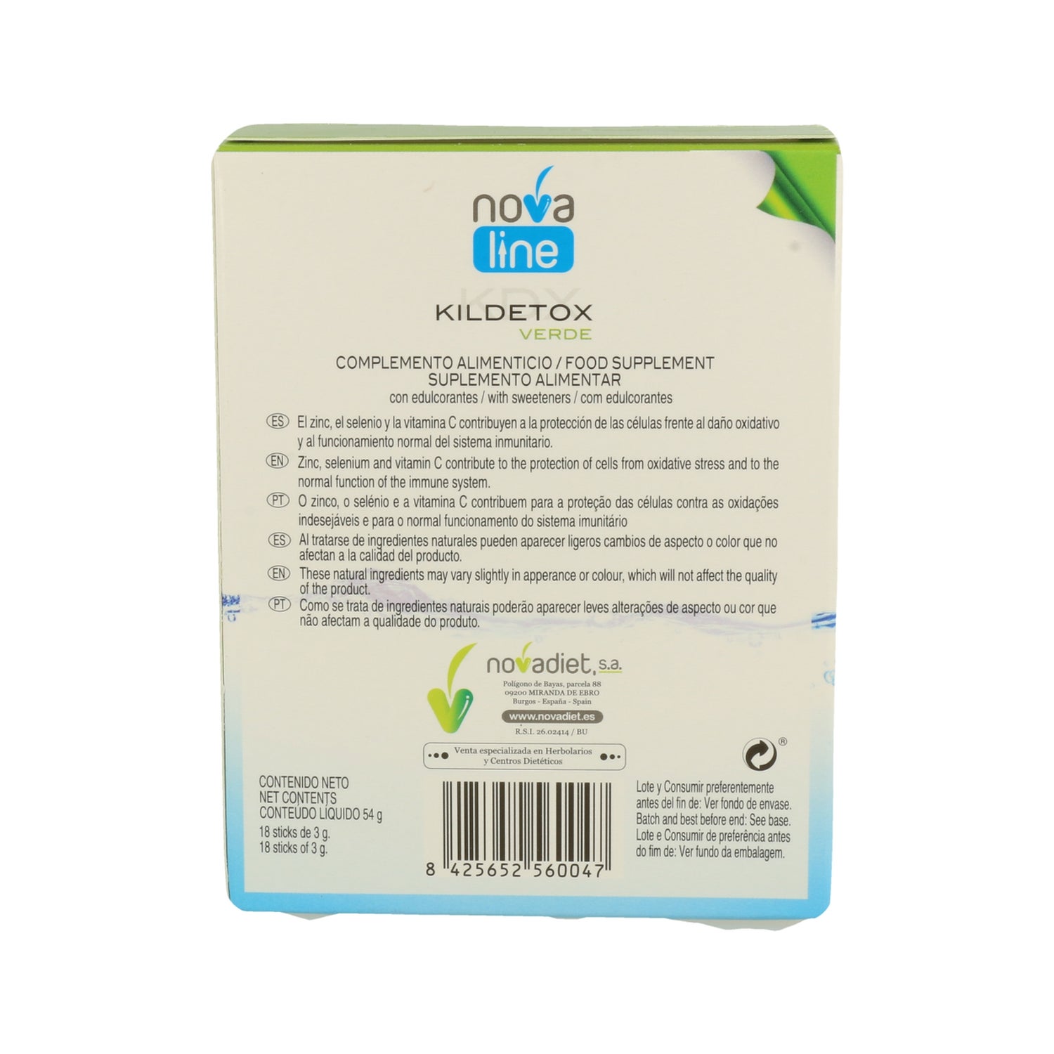 Kildetox Vert dépuratif 18 bâtonnets est un complément alimentaire détoxifiant hépatique, antioxydant et amincissant. Il est formulé avec des extraits végétaux spécialement recommandés comme dépuratifs et diurétiques :