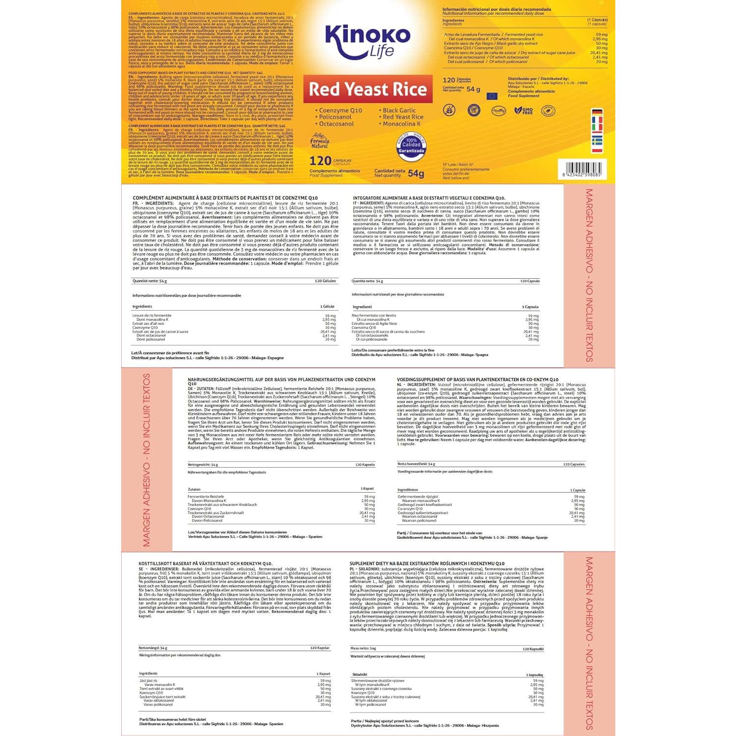 Kinoko Life Red Yeast Rice se distingue par sa haute biodisponibilité, grâce à sa composition pure, ce qui facilite son absorption dans l'organisme. Ce produit a passé des contrôles de qualité rigoureux et des tests de laboratoire, garantissant le respect des normes de l'Union Européenne. C'est un produit sans :
