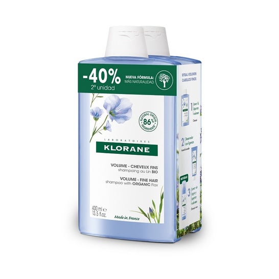 Shampoo Bio avec des fibres de lin (Linum usitatissimum L.), indiqué pour laver et démêler les cheveux fins et sans volume. Élaboré avec des fibres de lin cultivées selon des méthodes biologiques, dans les propres terres de la marque Klorane, situées dans le Tarn (France).