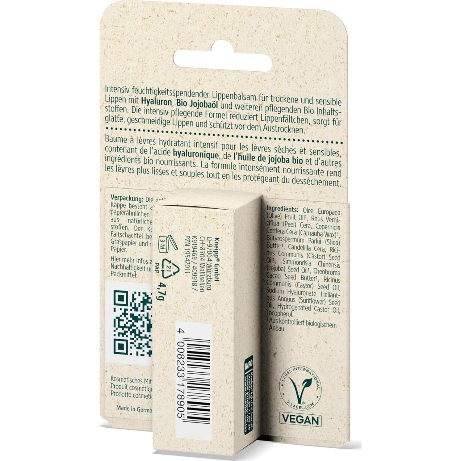 Kneipp Baume à Lèvres Hyaluron 4,7 g pour les lèvres sèches et sensibles offre une hydratation intense pour les lèvres gercées ou déshydratées. Il est indiqué pour les peaux sensibles exposées au froid, au vent ou aux changements climatiques.