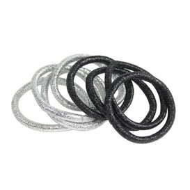 Set de 8 élastiques en tissu élastique de 0,2 cm d'épaisseur, qui facilitent la création de toutes sortes de looks. Ce produit a été spécialement conçu pour offrir une tenue et une fixation sans s'emmêler, sur tout type de cheveux. Il peut être utilisé seul ou combiné avec différents éléments pour décorer les coiffures.