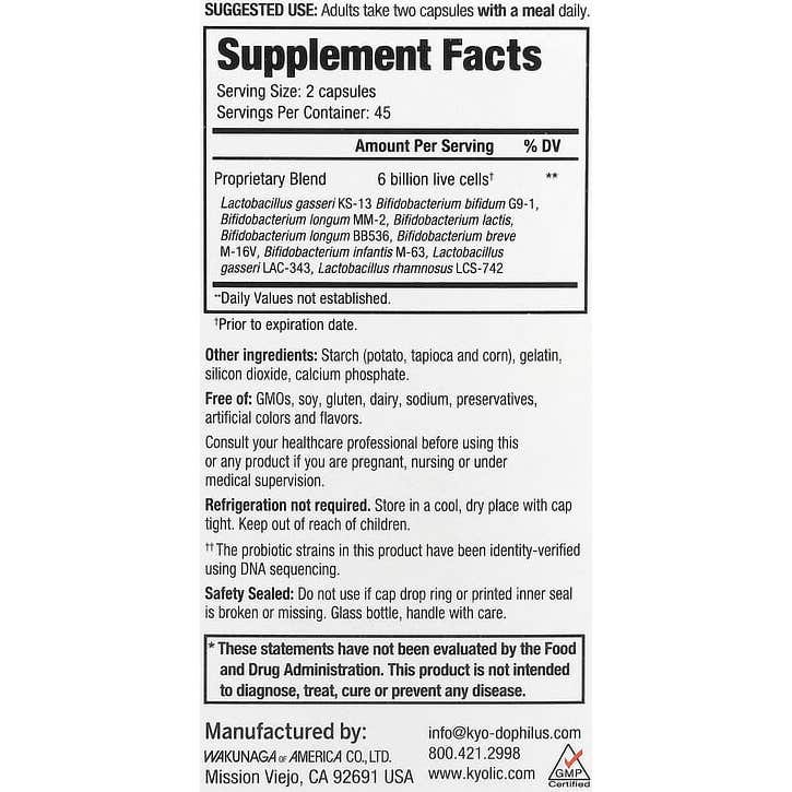 Kyo-Dophilus Multi 9 Probiotic 90caps est une formule qui contient une combinaison de neuf souches probiotiques. Parmi celles-ci, on trouve :
