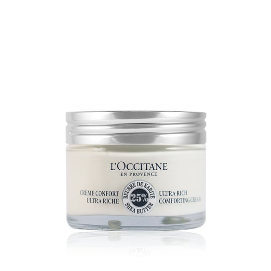 Crème pour le visage à base de beurre de karité qui aide à nourrir intensément les peaux sèches. Sa formule permet d'hydrater les peaux extra-sèches pendant près de 48 heures. 95 % de ses ingrédients sont d'origine naturelle.