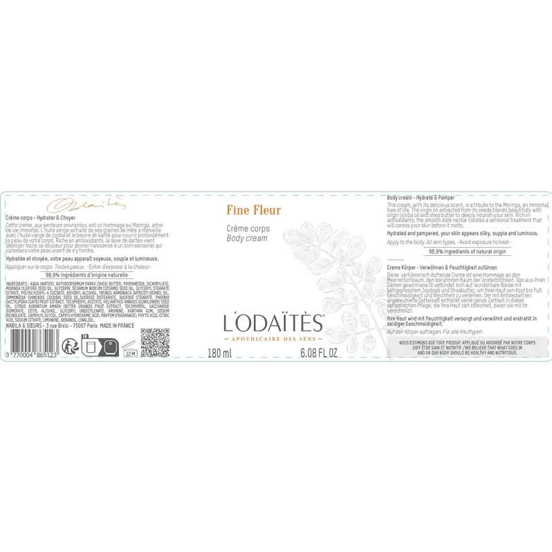 L'Odaïtès Fine Fleur Crème Corporelle de 180 ml est un traitement conçu pour offrir une nutrition profonde à la peau. Cette crème se distingue par sa fragrance enveloppante et sa formulation riche en ingrédients naturels.