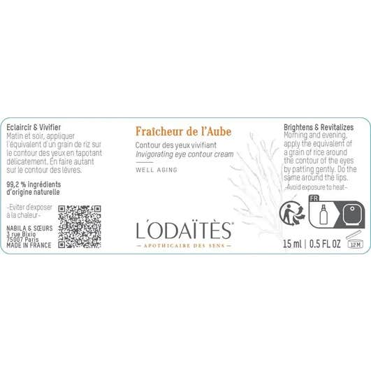 L'Odaïtès Fraîcheur de l'Aube Contour des Yeux Revitalisant est un produit conçu pour revitaliser la zone du contour des yeux. Sa formule contient :