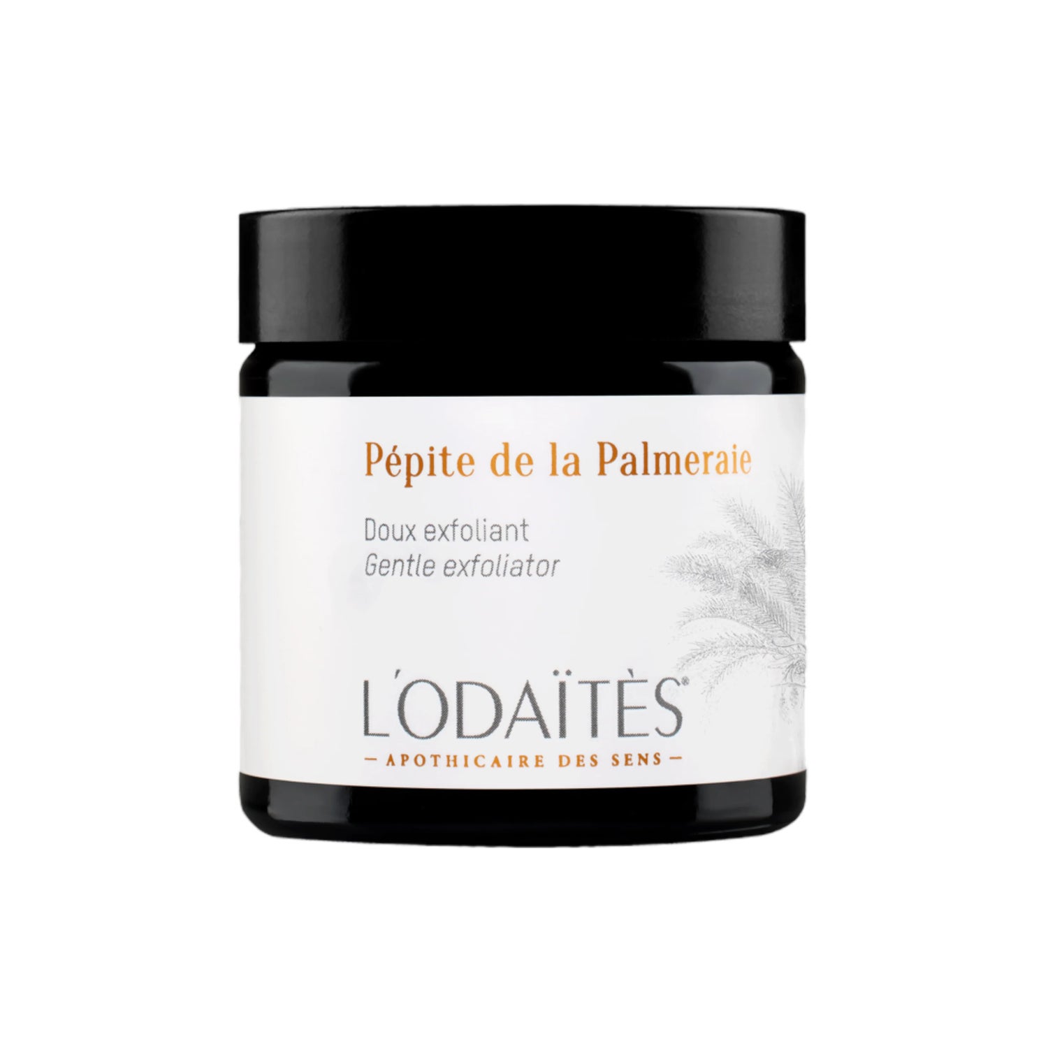L'Odaïtès Pépite de la Palmeraie Exfoliant Doux de 60 ml est un produit qui met en valeur les propriétés des poudres de graines de datte et de feuilles d'olivier. Ces ingrédients sont ultrafins et possèdent un grand pouvoir antioxydant. En se combinant avec Aloe Vera et miel, qui apportent des qualités hydratantes et apaisantes, cet exfoliant offre une expérience sensorielle qui se traduit par une action douce duale.