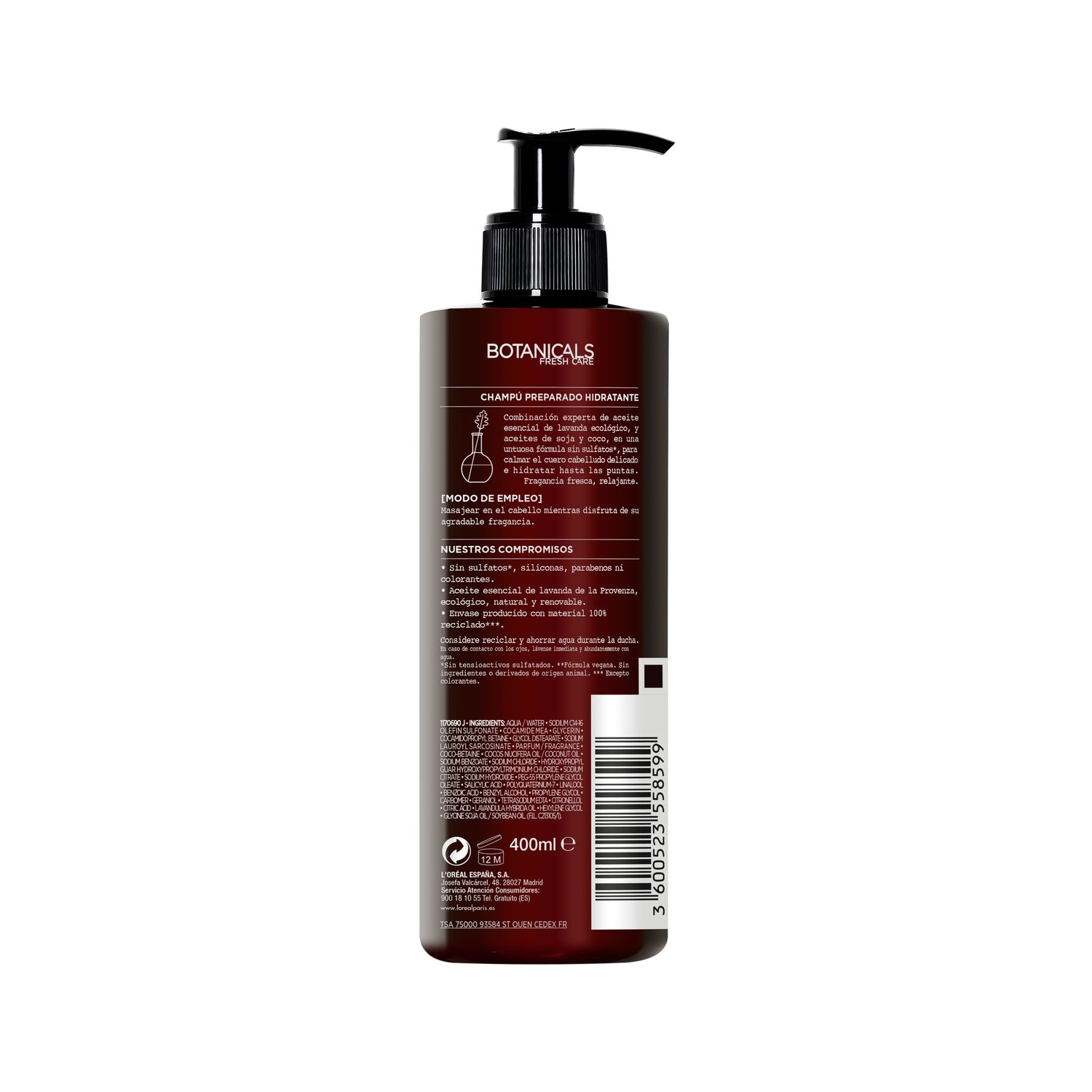 De plus, son emballage de 400 ml est fabriqué à partir de matériau 100% recyclé, promouvant un soin responsable.
