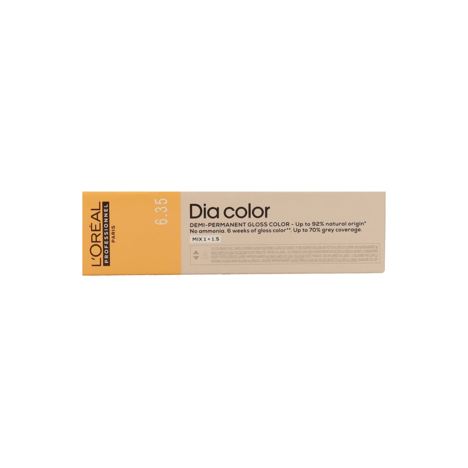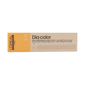 L'Oréal Dia Color 6.35 Blond Foncé Doré Acajou est une coloration demi-permanente sans ammoniaque qui offre une finition brillante et naturelle. Cette formule alcaline permet d'obtenir une couleur de type gloss qui dure jusqu'à six semaines, en plus de fournir une couverture allant jusqu'à 70% des cheveux blancs.