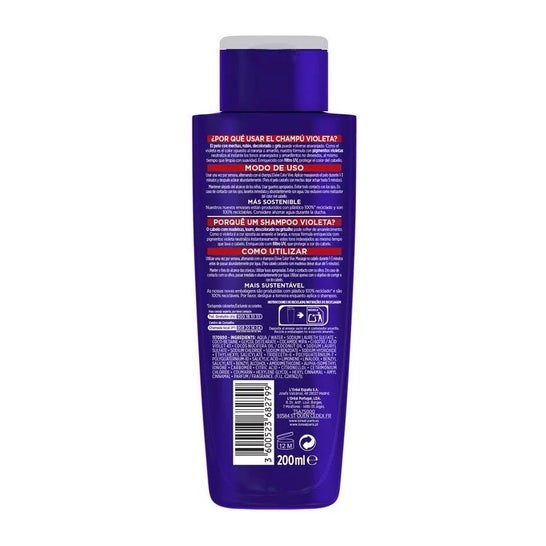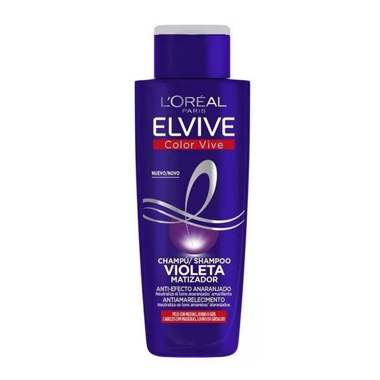L'Oréal Elvive Color Live Violet Shampooing 200ml est un produit conçu pour prévenir l'orange/jaunissement des cheveux méchés, blonds, décolorés ou gris. Sa formule contient des pigments violets qui neutralisent ces couleurs indésirables, protègent les cheveux avec des filtres UV et les nourrissent. Grâce à ce shampooing matifiant, la couleur reste intacte plus longtemps.