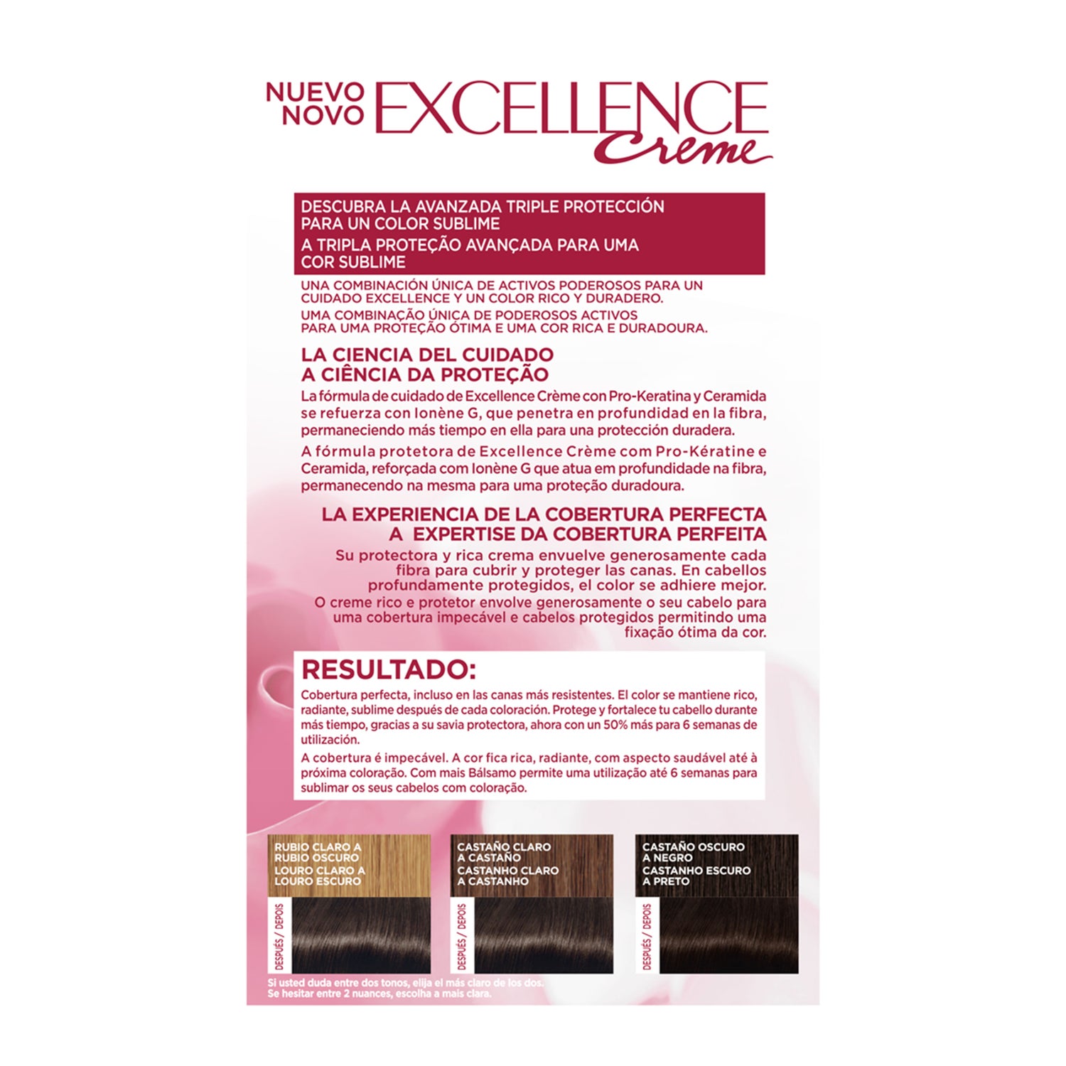 Excellence Crème Triple Soin Avancé assure une couverture optimale des cheveux gris en protégeant les cheveux à chaque étape de la coloration. Les cheveux s'illuminent avec une couleur riche et très naturelle, homogène et de longue durée.