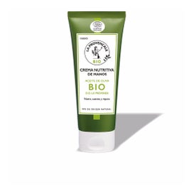 Crème nourrissante pour le soin quotidien de la peau sensible des mains. Contribue à améliorer la protection de l'épiderme contre les agressions extérieures et le dessèchement. Elle contribue également à stimuler les processus naturels de réparation de l'ADN cellulaire. Formulée à base d'huile d'olive, source naturelle de polyphénols antioxydants et de vitamine E, qui contribuent à renforcer l'hydratation de la peau et à favoriser la fonction de barrière. Enrichie d'aloe vera, de beurre de karité et de noix de coco hydrogénée. Il contient également une texture non grasse et un agréable parfum floral. Convient à tous les types de peau. Testé dermatologiquement. Composé à 99% d'ingrédients d'origine naturelle.