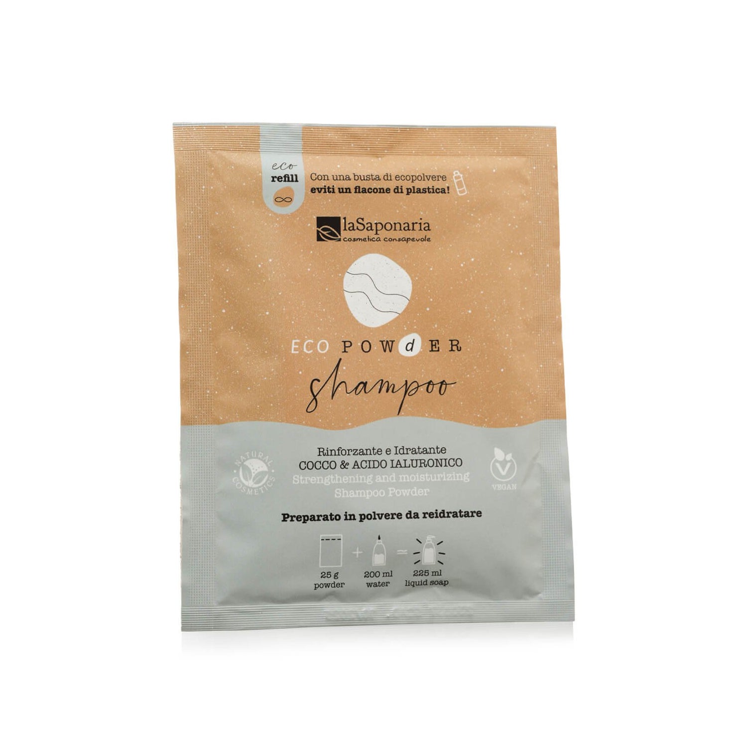 La Saponaria Eco Power Shampoo Fortifiant Poudre 25 g est un shampooing innovant en format poudre conçu pour réhydrater et renforcer tes cheveux. Avec une combinaison d'ingrédients tels que coco et acide hyaluronique, ce produit est pensé pour apporter douceur et brillance à tes cheveux, en plus d'un agréable parfum de coco.