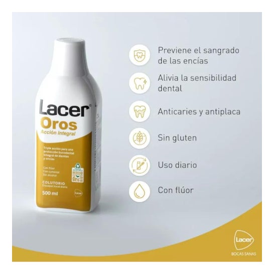Lacer Oros Bain De Bouche Triple Action 500ml est spécialement formulé pour prévenir et contrôler le saignement des gencives et l'hypersensibilité dentaire.