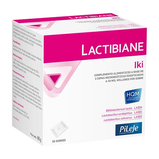 Le complément alimentaire lactibiane iki de Pileje est constitué de 3 souches microbiotiques concentrées à 40 milliards par sachet. Il est efficace pour favoriser le bon fonctionnement du système digestif.