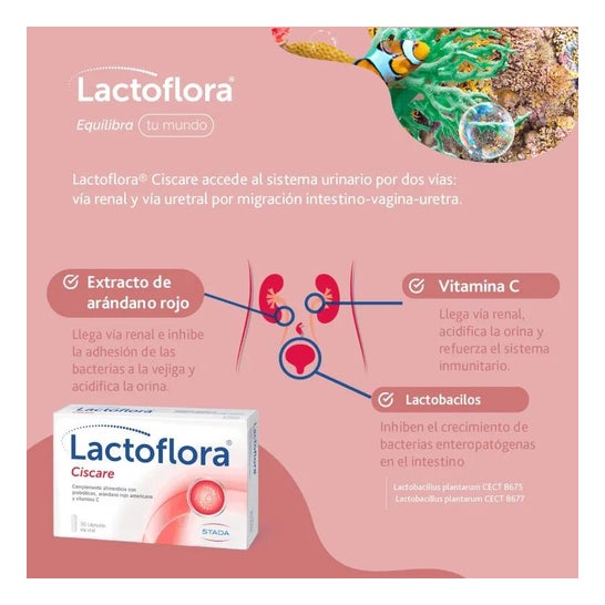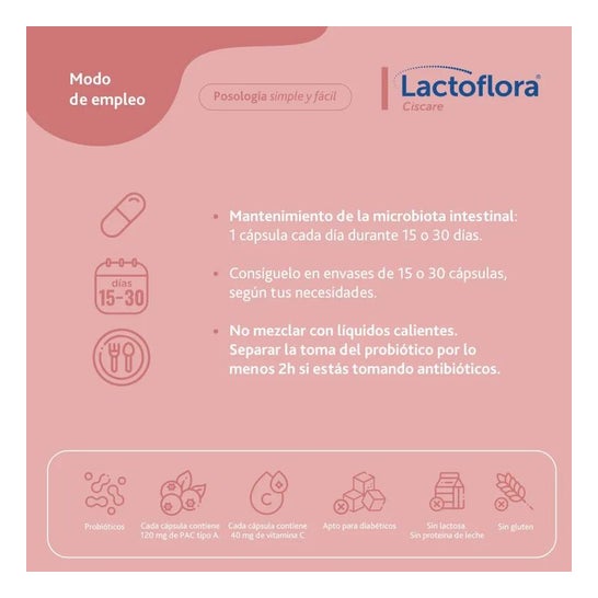 Lactoflora Pack Ciscare 2x30caps est un complément alimentaire probiotique formulé avec canneberge américaine et vitamine C.