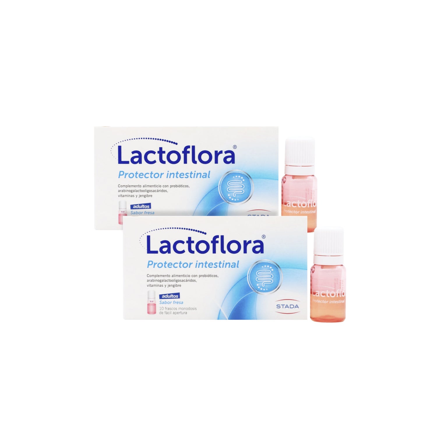 Lactoflora Pack Protecteur Intestinal Adulte Saveur Fraise 2x10 flacons est un complément alimentaire symbiotique qui aide à améliorer la fonction intestinale et la santé gastro-intestinale.