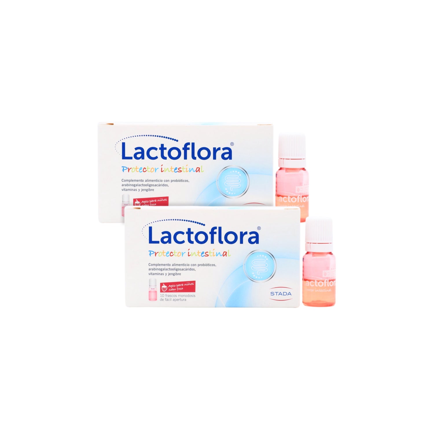Lactoflora Pack Protecteur Intestinal Enfants Saveur Fraise 2x10 flacons est un complément alimentaire symbiotique qui aide à améliorer la fonction intestinale et la santé gastro-intestinale des plus petits.