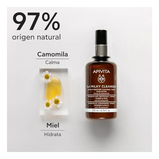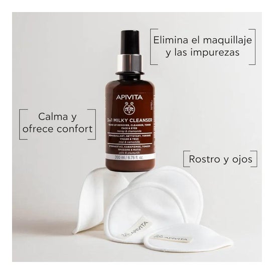 Apivita 3 En 1 Lait Nettoyant est un lait nettoyant doux qui aide à démaquiller la peau et à éliminer les impuretés du visage et des yeux.