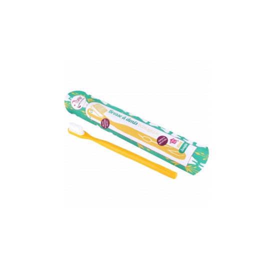 Lamazuna Brosse à dents Souple Rechargeable Jaune est une brosse à dents en bioplastique jaune avec tête rechargeable de dureté souple, fabriquée à partir d'huile de ricin, une plante à forte capacité d'absorption du carbone. C'est une brosse à dents durable et solide, qui résiste facilement à l'humidité et aux coups portés lors du brossage. Seule sa tête est à changer, ce qui la rend plus économique et plus durable.