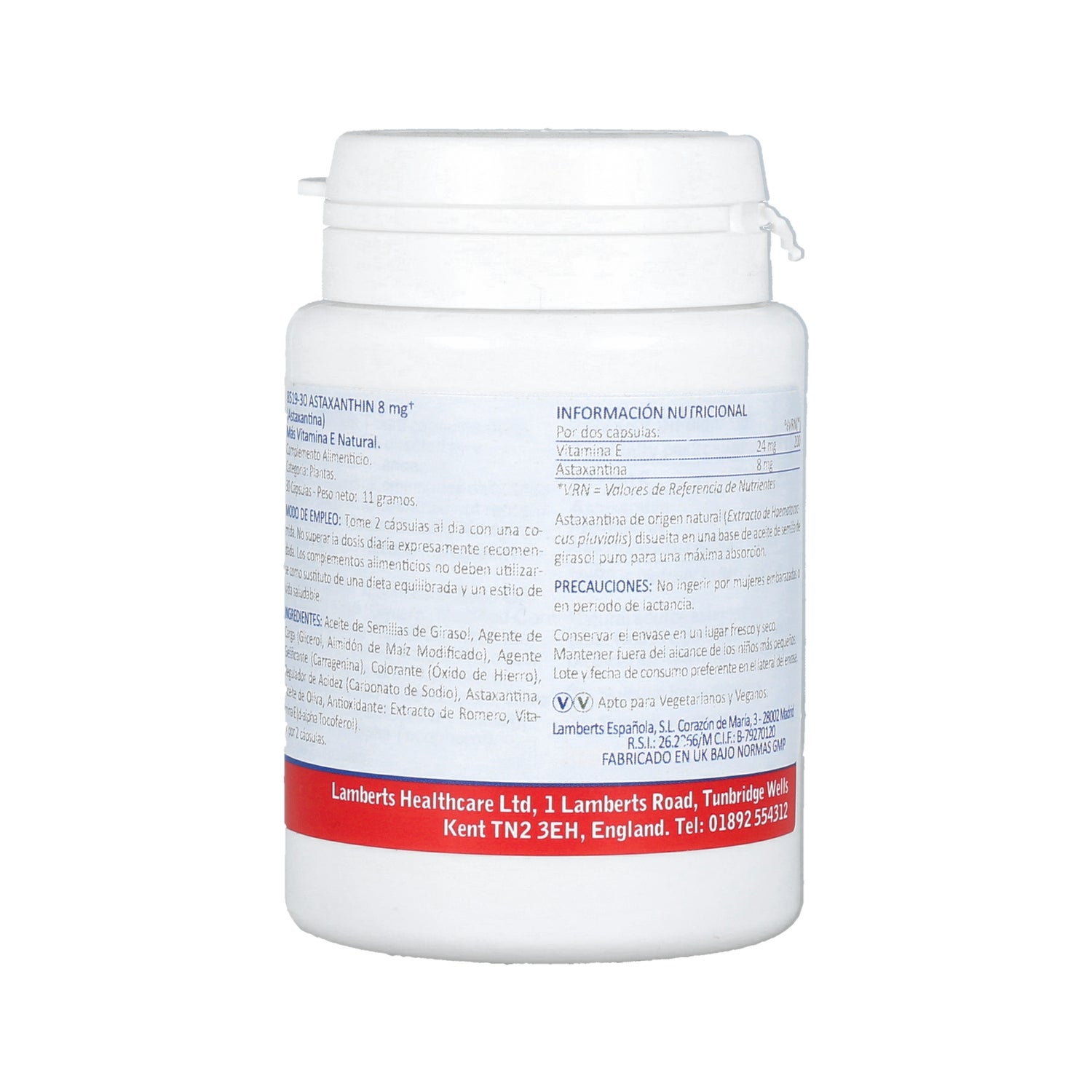 Lamberts Astaxantina 8mg con Vitamina E 30caps