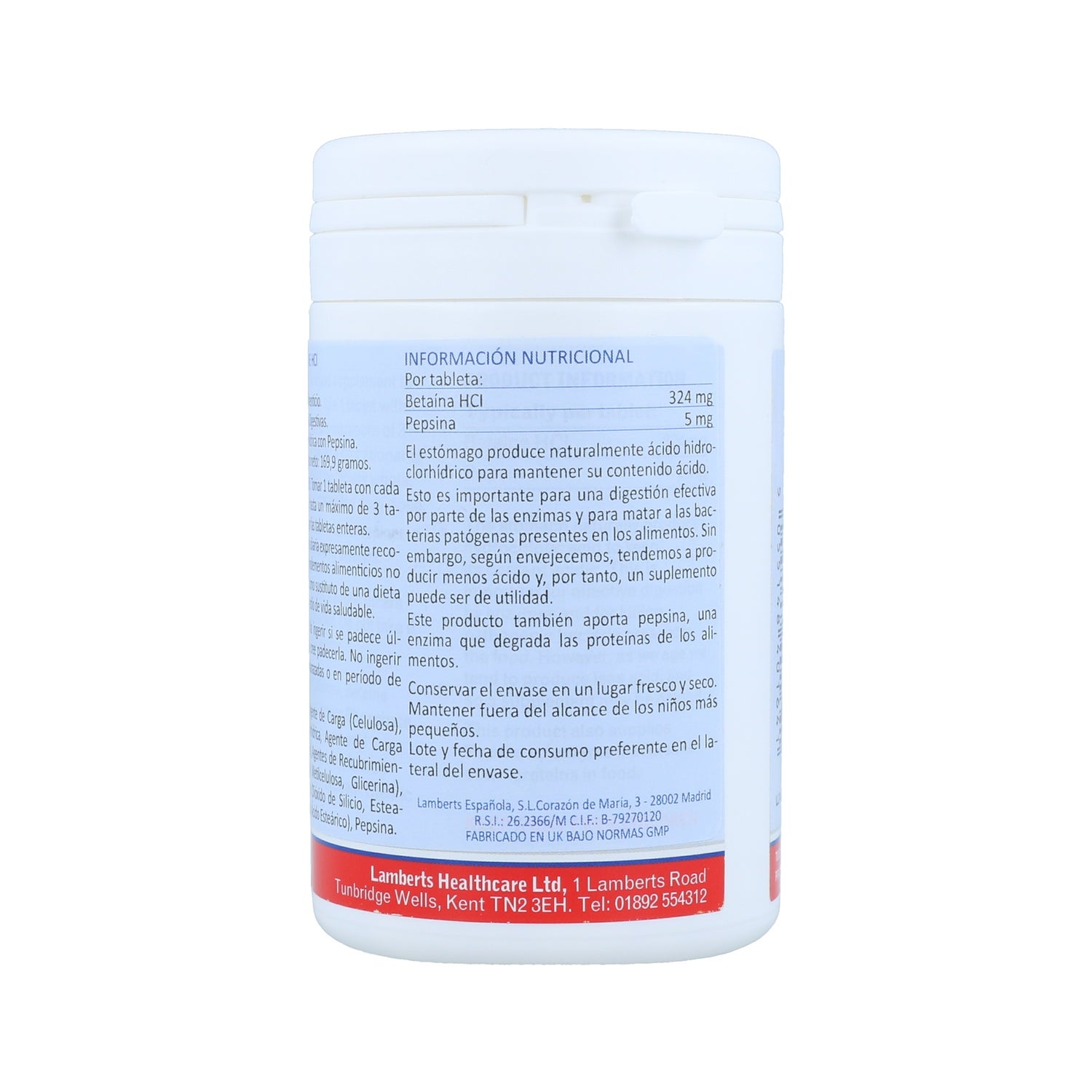 Lamberts Betaine HCL with Pepsin 180comp est un complément alimentaire à base d'acide chlorhydrique pour faciliter la digestion.
