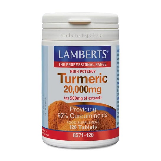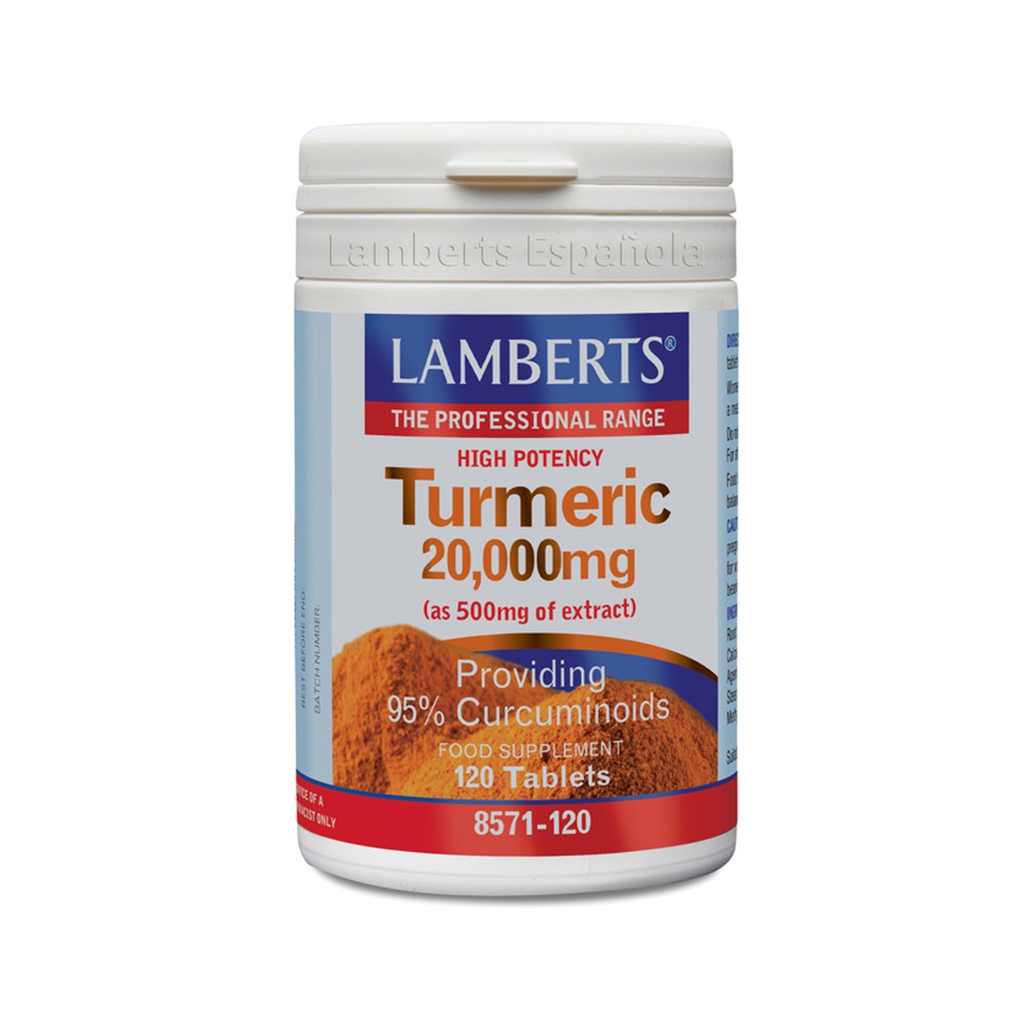 Lamberts Turmeric 20,000mg 120 Tabs est un complément alimentaire formulé à partir de curcuma. Il possède des propriétés antioxydantes et anti-inflammatoires, empêchant les radicaux libres d'affecter et d'altérer l'organisme.