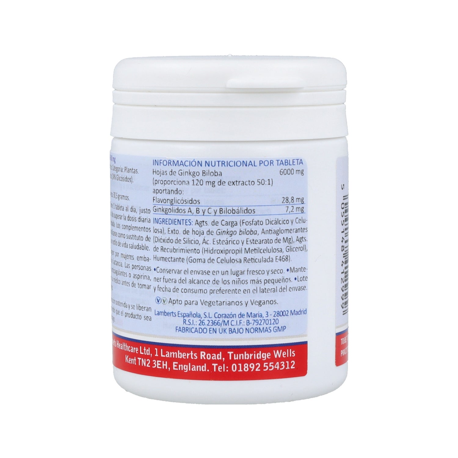 120 mg d'extrait 50:1 de feuilles de ginkgo biloba (équivalent à 6 000 mg de plante) (28,8 mg de flavonglycosides et 7,2 mg de ginkgolides A, B et C et de bilobalides.