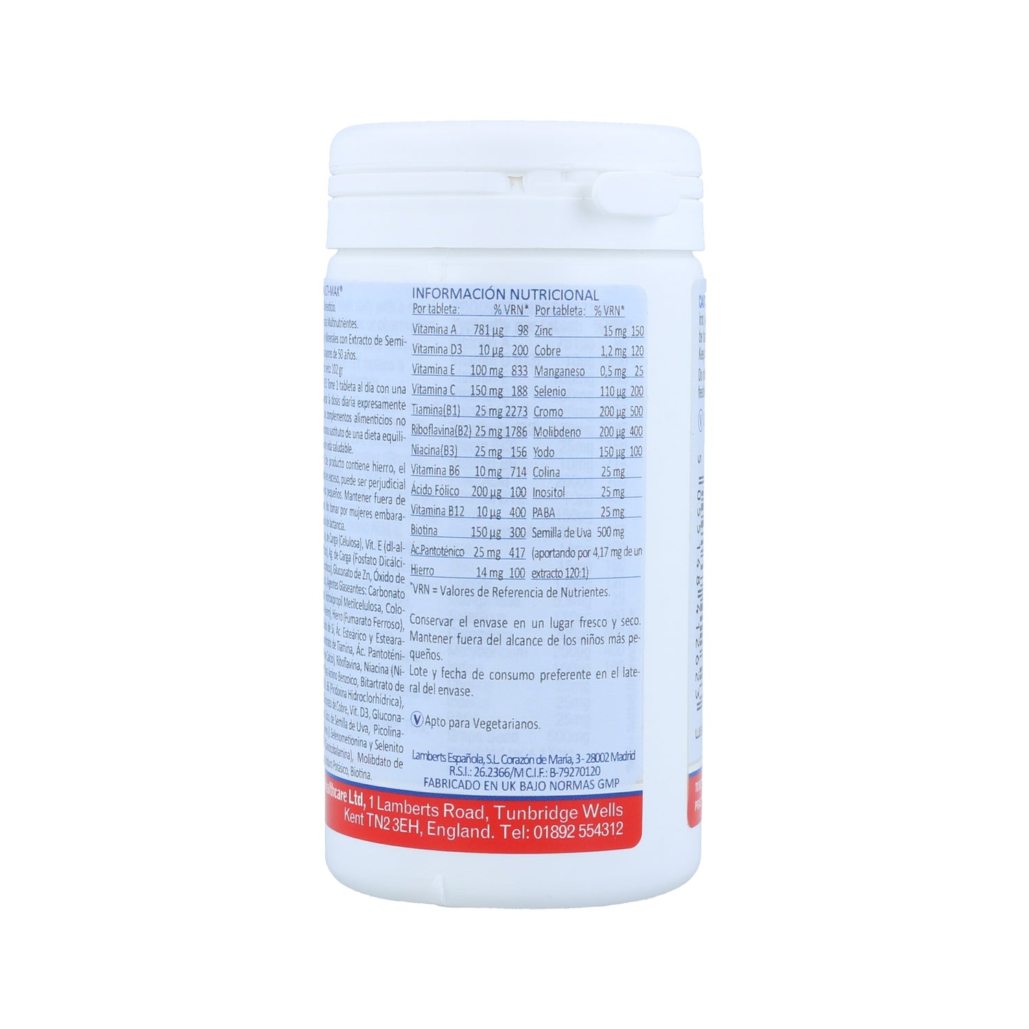 Complément alimentaire sous forme de comprimés, composé d'un complexe de vitamines et de minéraux, d'oligo-éléments et d'antioxydants provenant de pépins de raisin. Il apporte un soutien au système immunitaire de l'organisme, en améliorant l'énergie du corps. Grâce à sa formulation, il favorise la réduction de la fatigue. Indiqué pour les personnes âgées dans les moments de manque de vigueur.